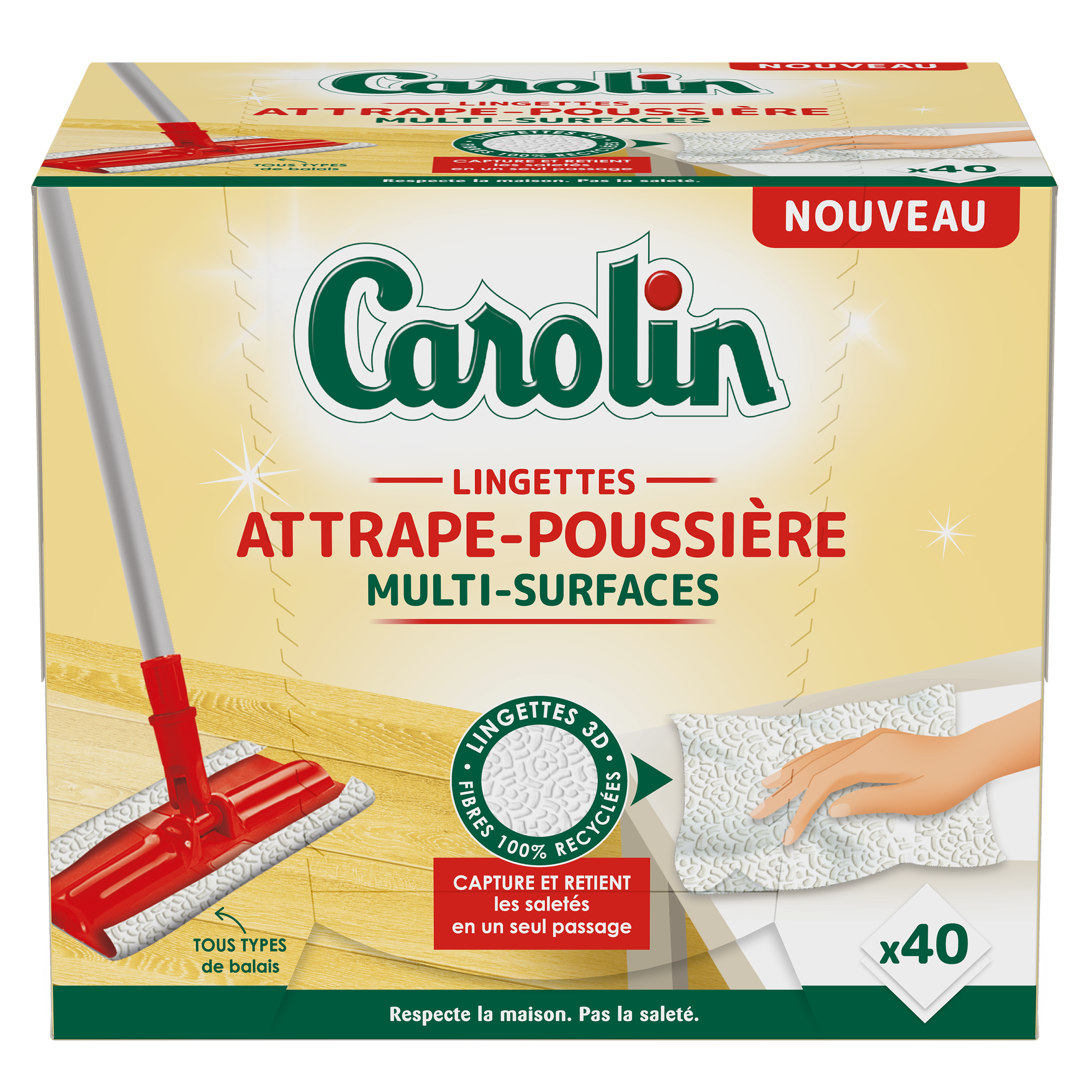 En un geste, les lingettes jetables Carolin nettoient vos sols en profondeur et font briller toute la maison sans rincer et sans laisser de trace.